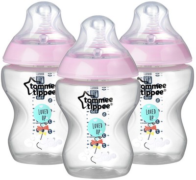 Tommee Tippee Closer To Nature Baby Bottle Decorated Pink 3 Count