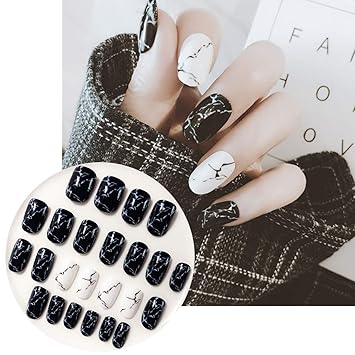 Amazon Com 24pcs Smooth Black White Marble False Nails Natural